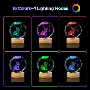 🐾 A purrfect gift for cat lovers! This adorable 3D Crystal Cat Ball features a detailed laser engraving of a cat inside a sparkling crystal sphere. The color-changing LED base with remote control brings the scene to life, glowing beautifully in any room. ✨