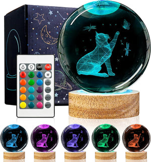 The Cat - 3D Crystal Ball with color changing LED Base – The perfect gift for cat lovers 🐾