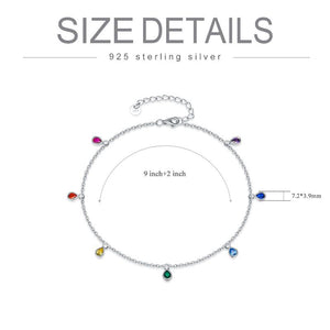 Anklets Sterling Silver Multi Color Oval Rainbow Anklet Bracelets Fashion Jewelry