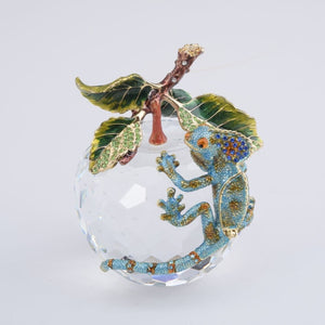 An enchanting handmade Apple with a chameleon on it crystal statue.