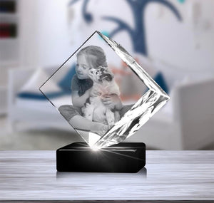 Perfect as a gift for couples, weddings, anniversaries, memorials, or family moments, the Diamond shape adds a touch of elegance and brilliance to any space. Place it on a light base to illuminate every detail and make your memory come alive with a magical glow.