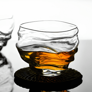 The unique design provides a captivating visual experience as your whisky swirls within. Textured on the outside for a tactile grip, it contrasts with the smooth inner surface, showcasing the rich colors of your whisky.