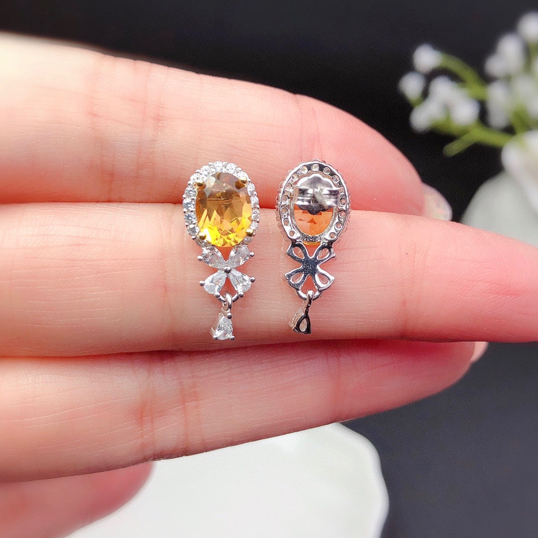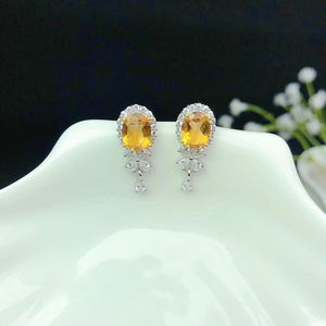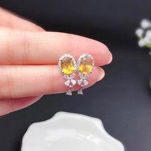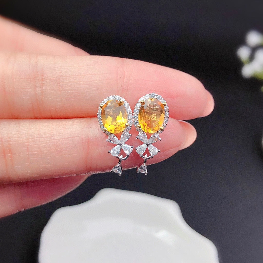 Natural Citrine Stud Earrings Crystals Fully Purified Fire Explosion