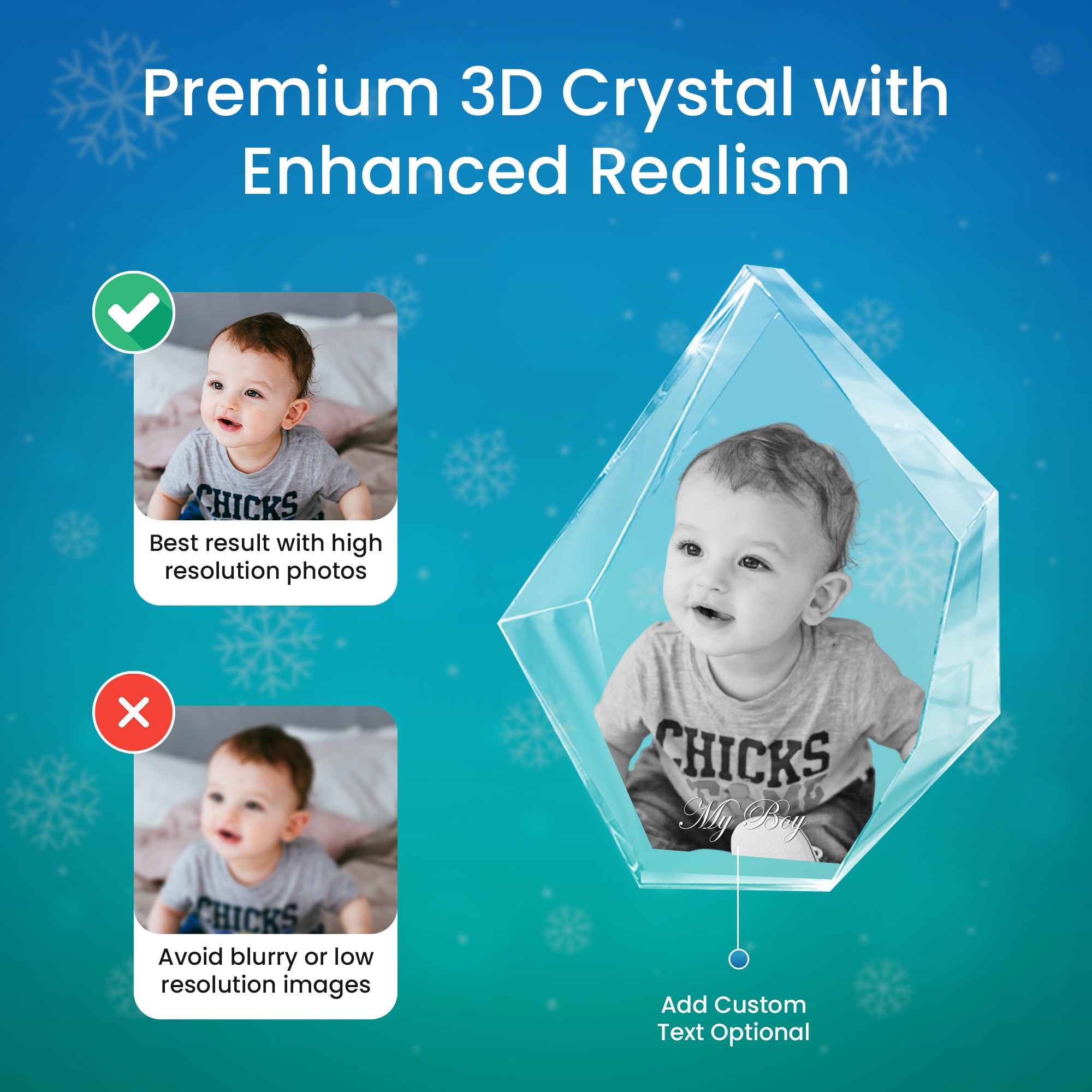 Transform your precious memories into stunning 3D engravings within a crystal. Each piece is expertly crafted to showcase your photos or artwork with intricate detail and clarity.