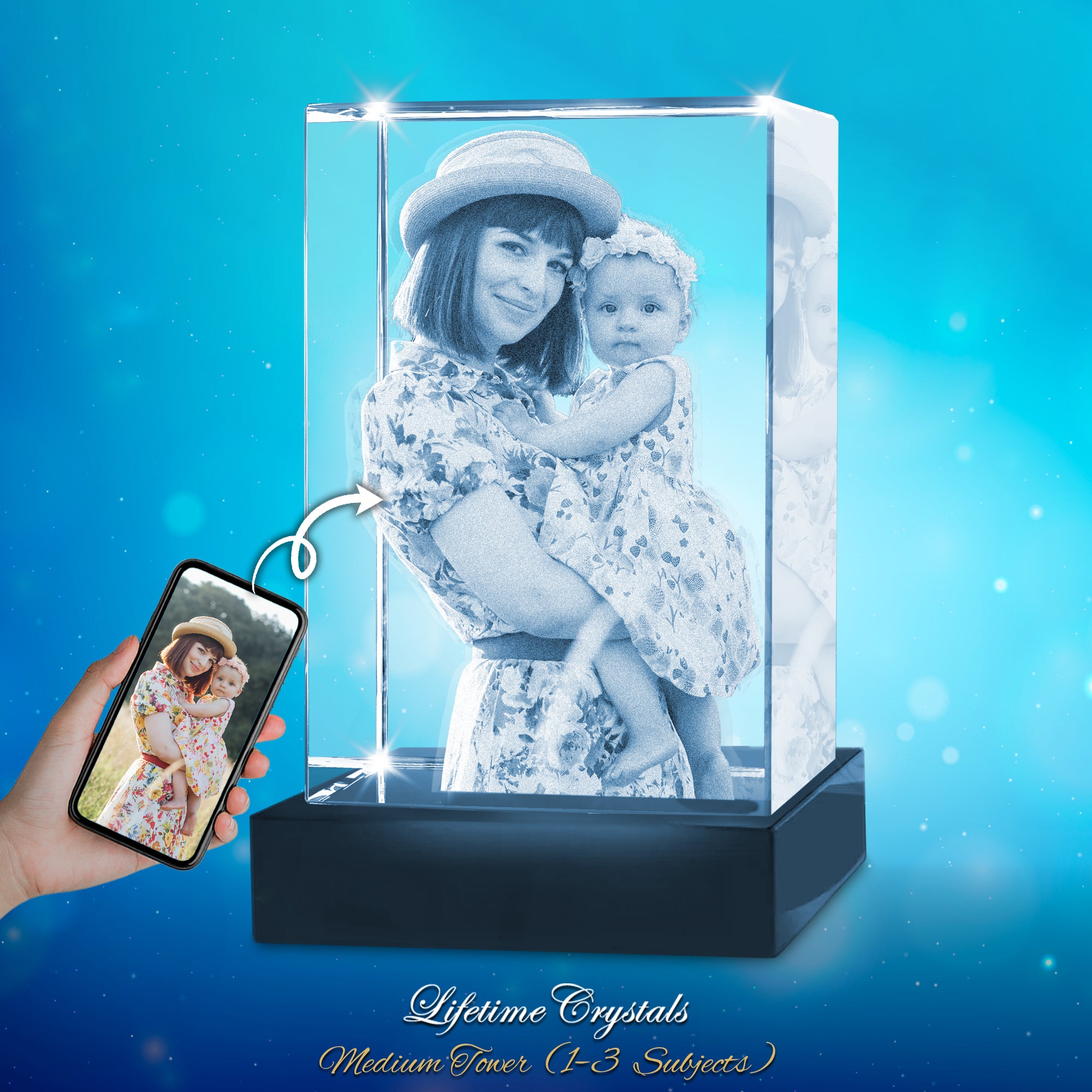 Bring your most meaningful moments to life with our Custom 3D Tower Crystal, crafted from premium K9 crystal for exceptional clarity and brilliance. Your photo is laser-engraved inside the crystal in a lifelike 3D design that shines from every angle.