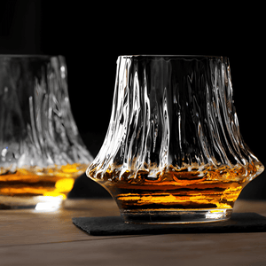 The unique design provides a captivating visual experience as your whisky swirls within. Textured on the outside for a tactile grip, it contrasts with the smooth inner surface, showcasing the rich colors of your whisky.